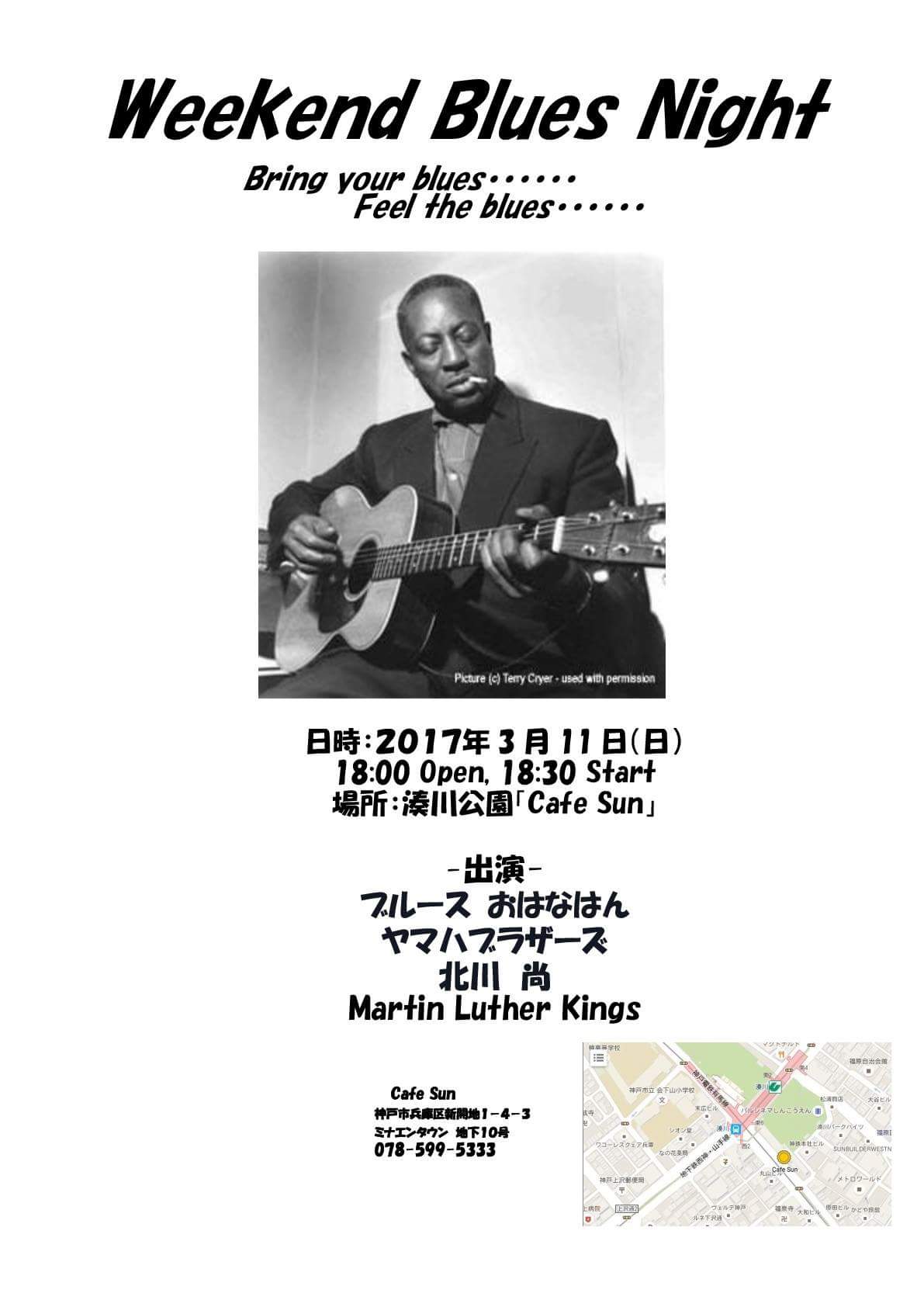 11 March 無題 本日はコレ!定期開催のWeekend Blues Nightです(*^_^*)当ライブは完全にタイムスリップです。歴史あるブルースに触れるならココで間違いないでしょう。18:30スタート のーちゃーじお待ちしております☆彡