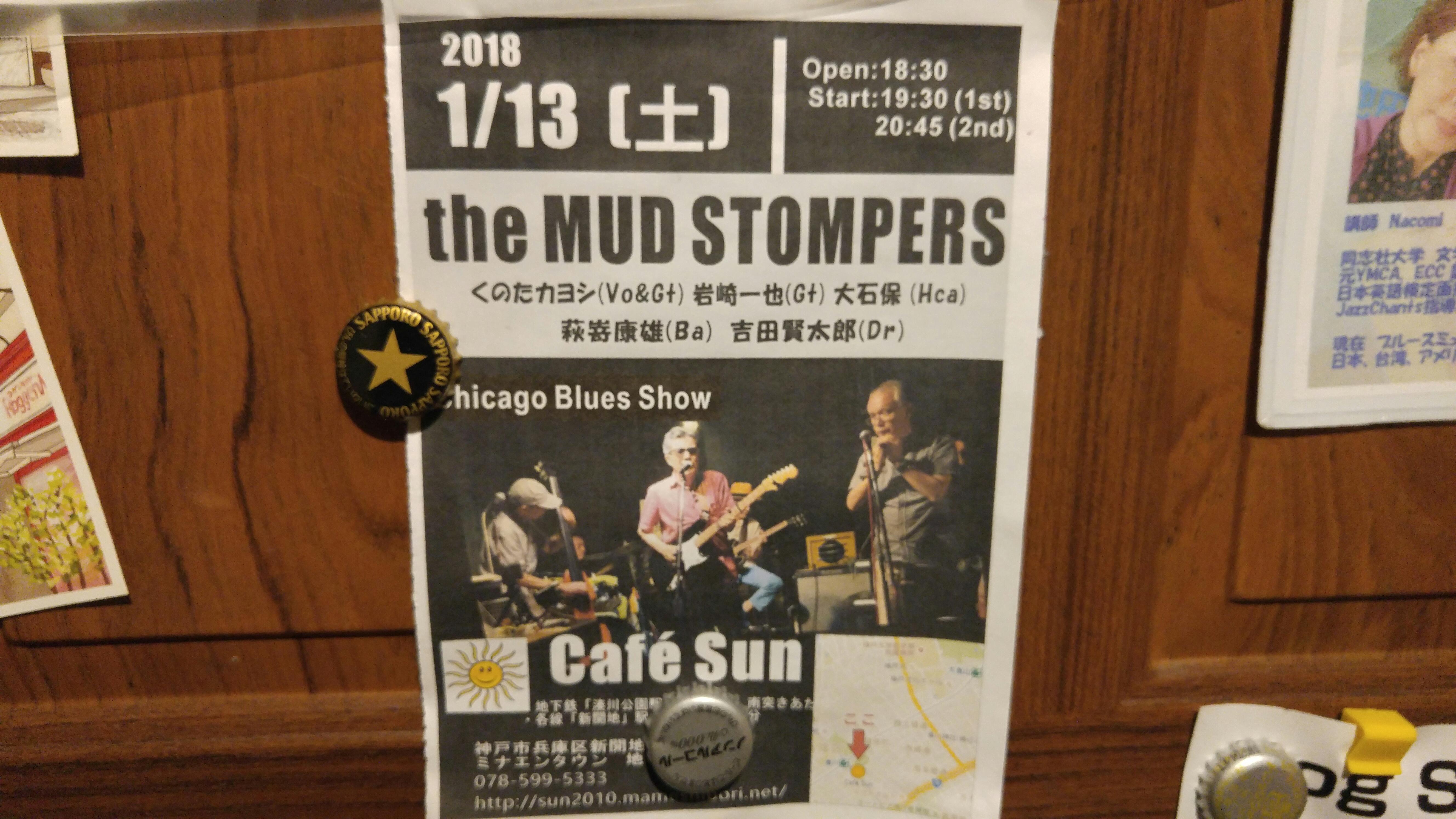 12 January 明日13日土曜日は! 超しびれるブルースをどうぞ!The MudStompersファンのお客様から「大学のときに、60を過ぎてもブルースを演っていたい」とメンバーの方が仰っていたと聞きました。その通りになるって凄いことです。なので昔からのファンも根強く、名前も知れ渡っております(*^_^*)しかしお客様が踊るようになったのは最近だそうで。。なんで?ノーチャージ♪気軽に楽しんでくださいな~!