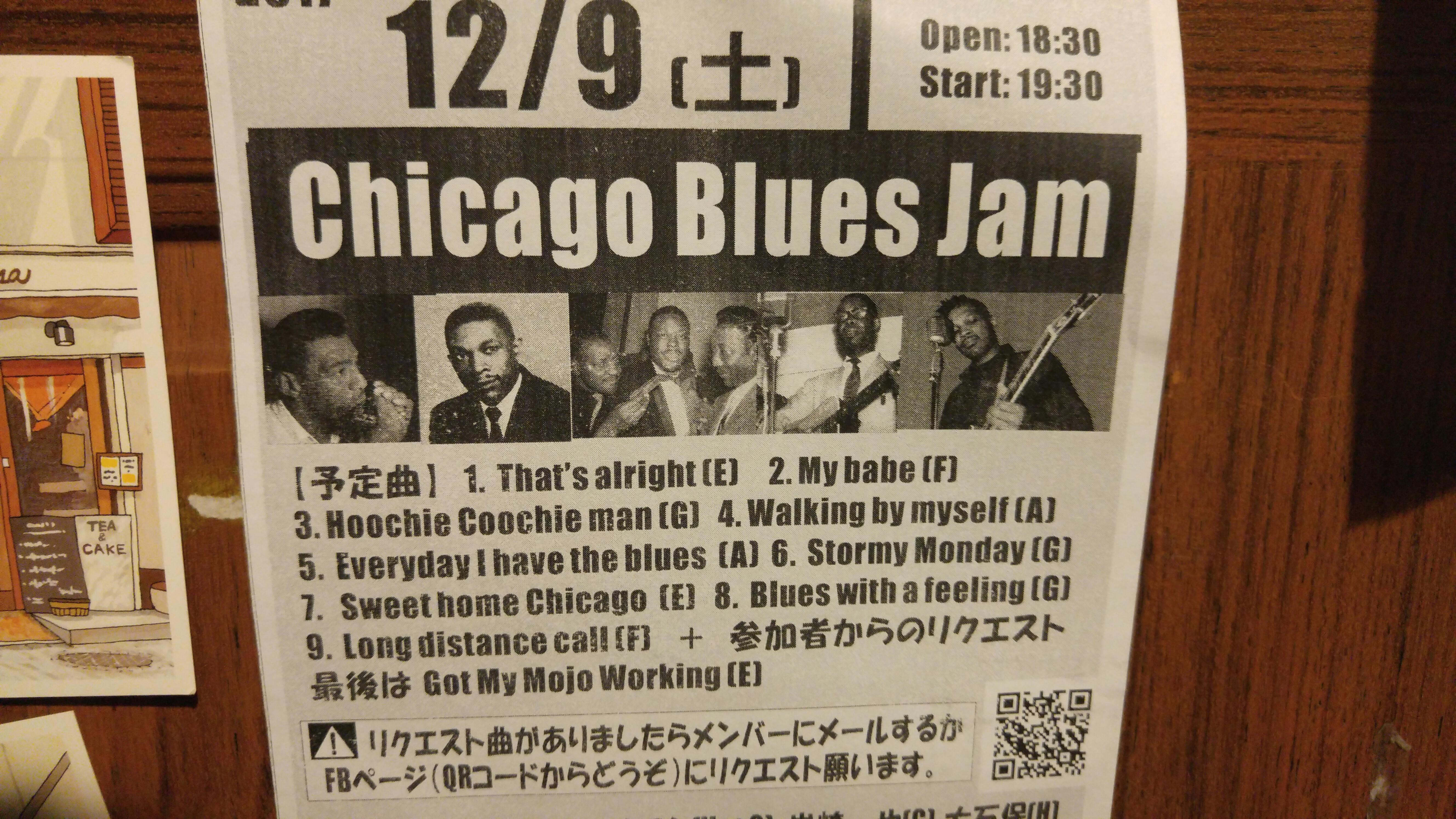 09 December シカゴぶるーーーーーーーす! 本日はシカゴブルースセッション♪予定曲の通りに進行、その後リクエスト曲という流れです(*^_^*)ホストメンバーは The Mud Stompers!当イベントも年内は最後になりました☆今年も沢山の方来ていただいたこと、感謝申し上げます<(_ _)>English is also all right today !, probably